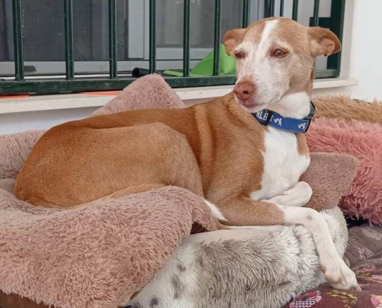 Canela wurde Mitte Oktober 2025 an einer Tankstelle am Stadtrand von Jaén ausgesetzt und dort gefunden. Unsere spanische Tierschutzkollegin machte sich gleich auf den Weg und mit viel Geduld und Ruhe ließ sich Canela von ihr schließlich sichern; anfangs war sie sehr misstrauisch und wollte keinen Kontakt zulassen. Die hübsche Hündin lebte dann zwei Tage bei ihr zuhause, bevor sie ins Tierheim kam. In dieser Zeit zeigte sich, dass Canela eine sensible Hündin ist, der man Zeit geben muss, Vertrauen aufzubauen. Über ihren Mikrochip konnte ihre frühere Besitzerin ausfindig gemacht werden und es stellte sich heraus, dass sie Drogenprobleme hat. Canela lebte ihr ganzes Leben lang, immerhin elf Jahre, sehr eng mit ihr zusammen, begleitete sie überall hin und war stark an sie gebunden. Ihr Partner hatte Canela dann einfach an der Tankstelle ausgesetzt, als sie das Kind der beiden gebissen hat. Ob die Hündin in dieser Familienkonstellation die alleinige „Schuld“ an dem Beißvorfall hatte, sei dahingestellt...