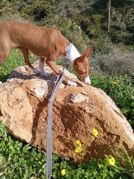 Pepe ist schon stubenrein, sehr verspielt und liebevoll mit den Kindern der Familie und mit Artgenossen verträglich. Pepe liebt Spaziergänge und Abenteuer, und zeigt bisher noch keinen stark ausgeprägten Jagdtrieb, den er als Podenco Andaluz natürlich noch entwickeln kann. Er zeigt schon Interesse an Mäusen, und schnüffelt viel, jedoch läuft er trotzdem vorbildlich an der Leine! Weil Pepe immer in Gesellschaft von Menschen oder Hunden ist, hat er noch nicht gelernt, ganz alleine zu bleiben. Dies müsste in seinem Zuhause, nach einer Eingewöhnung, sanft geübt werden.