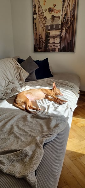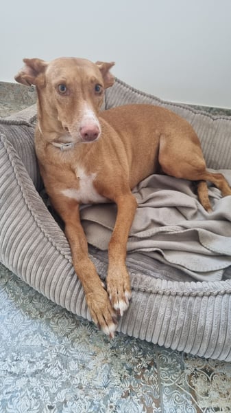 Leona ist sieben Jahre alt (Stand 08/2025) und lebt seit 2022 bei ihrer Familie in Deutschland. Leider kann sie dort nicht mehr bleiben, weil die aktive und energiegeladene Podenca trotz Arbeit mit verschiedensten Trainern und viel Üben nicht gelernt hat, wie man als Zweithund an der Leine läuft. Was sich bis vor kurzem noch durch separate Gassirunden regeln ließ, wird nun durch eine eigentlich tolle Nachricht erschwert. Ihre Familie hat ein Baby bekommen, und an gemeinsame Spaziergänge mit ihrem vierbeinigen Bruder und dem Kinderwagen ist nicht zu denken. Leona ist also oft von Aktivitäten ausgeschlossen und muss allein zu Hause bleiben – und das möchten ihre liebevollen Halter ihr nicht länger zumuten. Aber Leona darf bei ihrer Familie bleiben, bis sich eine bessere Lösung für sie gefunden hat – und sie kann dort auch besucht werden.