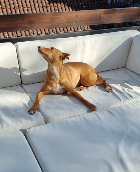 Leona hat keine Skrupel, allein das Haus zu verlassen, wenn ihr langweilig ist. Steht die Türe auf, ist sie weg, um ein Abenteuer (oder eine Katze oder einen Hasen) zu suchen. Deswegen wäre ein gut gesicherter Garten in Leonas Zukunft super, oder zumindest eine doppelt gesicherte Haustür, um zu verhindern, dass es zu Unfällen und angsterfüllten Suchaktionen kommt. Auch ein Sicherheitsgeschirr ist für Leona bei Spaziergängen ein Muss. Ob sie noch lernen kann, ohne Leine zu laufen, ist (typisch für Podencos) fraglich, aber das ist an sich kein Problem. Es gibt viele Möglichkeiten die hochintelligenten Sprinter geistig und körperlich auszulasten, auch ohne Freilauf – und ein gesicherter Hundeplatz oder -park ist ja auch oft ein Alternative.