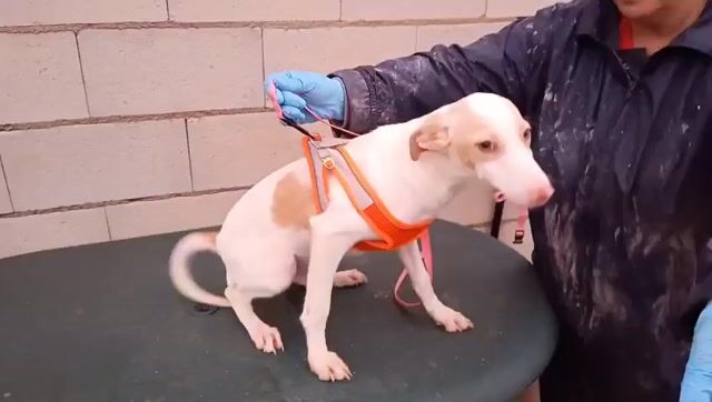 -Geschichte des Hundes: Matías wurde von einem Mann gefunden, auf einem Spaziergang in sumpfigen Gebiet entdeckt.Er streunte auf der Suche nach Futter durch das Gelände.