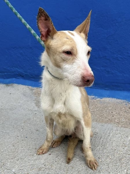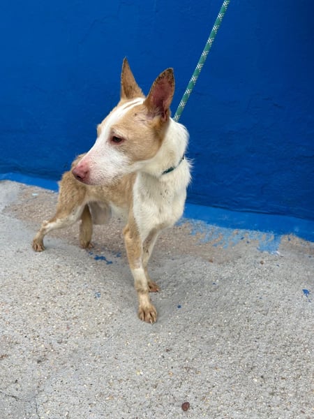 Atreu, geboren ca. im September 2024, ist ein junger, wunderschöner Podenco-Rüde von etwa 43 Zentimetern Schulterhöhe. Er wurde gerettet und befindet sich nun in Rosanas Obhut im Tierheim in Burgos, Spanien, wo er sich von den Strapazen der Vergangenheit erholen darf. Sein Körper ist noch geschwächt, und er braucht liebevolle Fürsorge, gutes Futter und ein wenig Zeit, um wieder zu Kräften zu kommen. Doch schon jetzt zeigt er, welch wundervoller Hund in ihm steckt: gutmütig, lieb, anhänglich und voller Dankbarkeit.