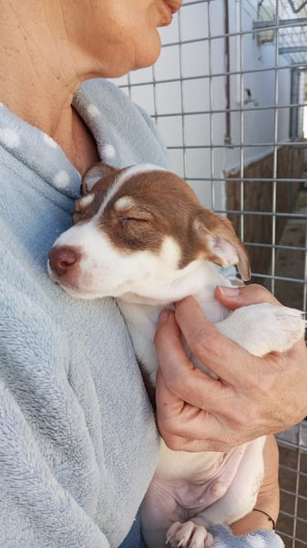 Ihre Podenco-Mutter „Astyn“ fühlt sich langsam genervt von der Welpenbande und würde sich sicher auch freuen, wenn ihre Babies nach und nach ein schönes Zuhause finden ;-).
