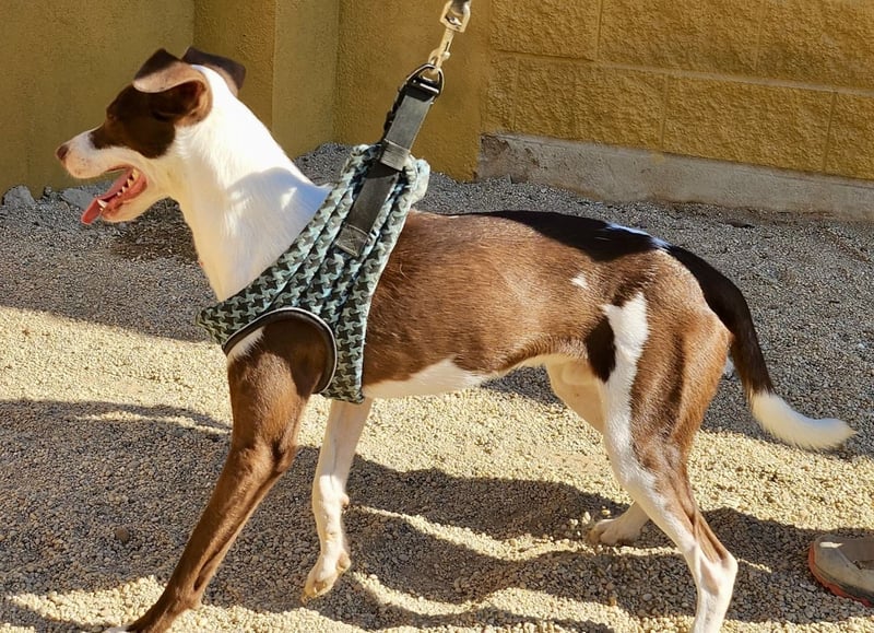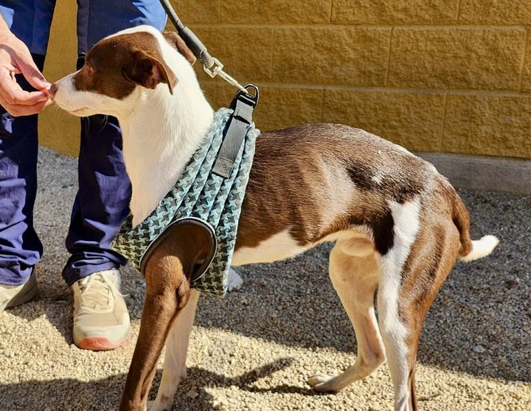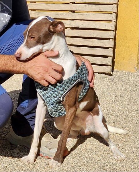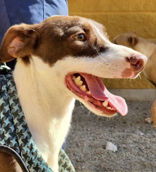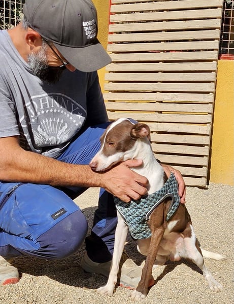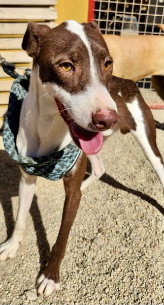 Nutello (4545) Podenco Andaluz - Mix, geb. am - wird nachgereicht -, hat eine Schulterhöhe von 43 cm und wiegt 9 kg.