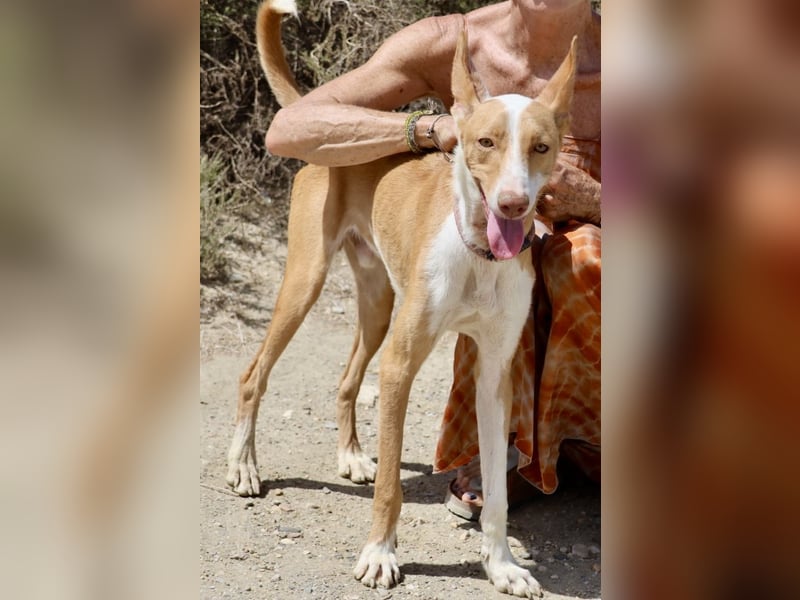 Rood (4274) Podenco Andaluz Bub, geboren am 22.08.2022, hat eine Schulterhöhe von 43 cm und wiegt 15 kg.