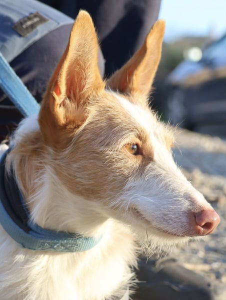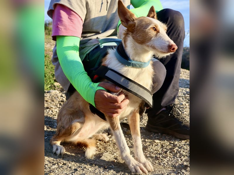 Happy (4603) Podenco Andaluz - Mix; rauhaarig Hündin, geb. am 14.08.2023, hat eine Schulterhöhe von 42 cm und wiegt 11 kg.