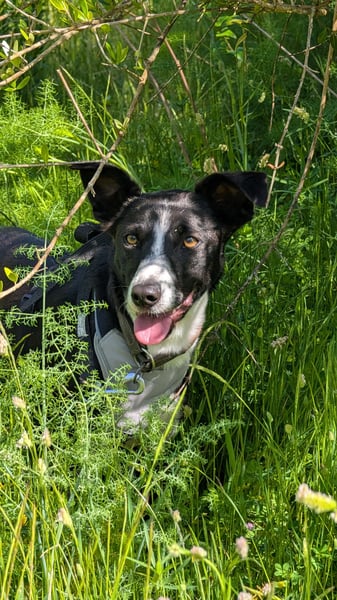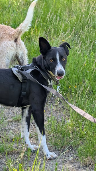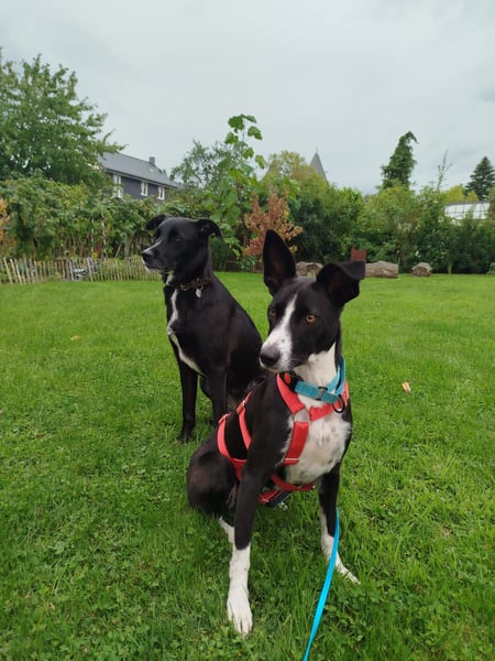 Mit anderen Hunden ist Berta hervorragend sozial, spielt ausgelassen und kommuniziert klar. Im kontrollierten Freilauf zeigt sie sich sehr orientiert an der Gruppe und kommt, auch dank hoher Futtermotivation, zuverlässig zurück.