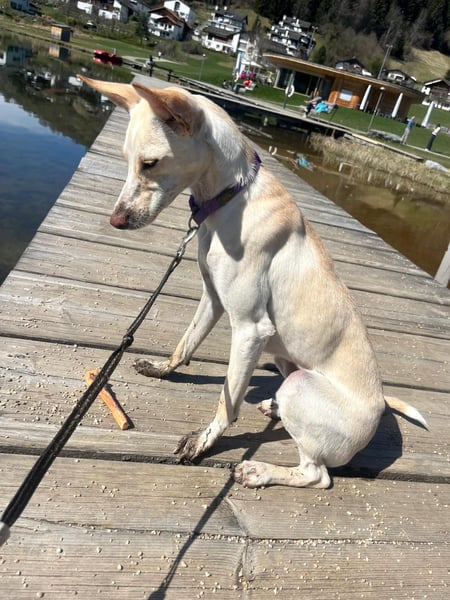 YUKI ist eine bezaubernde Podenco-Mix-Hündin, geboren am 17. Dezember 2023. Mit ihren 45 Zentimetern Schulterhöhe und etwa 10 Kilogramm ist sie eine zarte, feinfühlige Begleiterin, die derzeit in der Schweiz lebt. Leider muss sie ihr Zuhause wegen einer Krankheit in ihrer Familie verlassen – nicht, weil sie etwas falsch gemacht hat, sondern weil das Leben manchmal andere Wege vorgibt.
