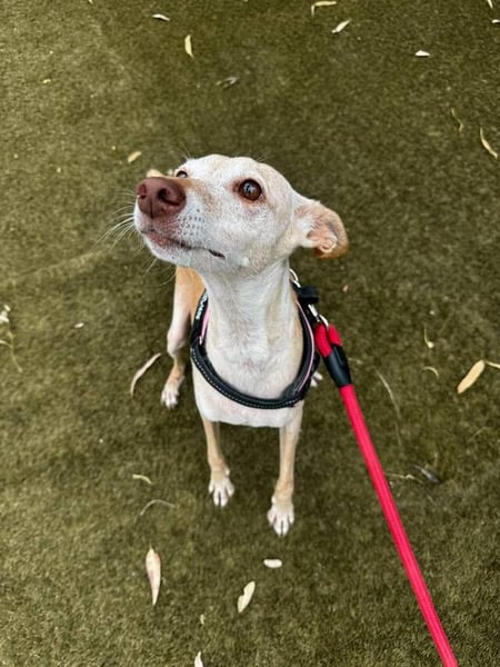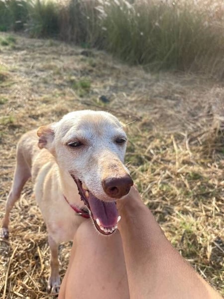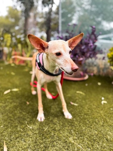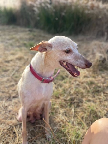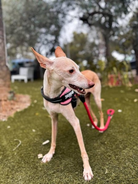 Trotz allem, was sie erlebt hat, ist Lucia eine fröhliche und menschenbezogene Hündin. Sie liebt es, draußen in der Natur unterwegs zu sein, zeigt sich aber im Alltag eher sanft und zurückhaltend – ganz podencotypisch. Bei zu schnellen oder hektischen Bewegungen duckt sie sich noch oft und macht sich klein, ein Zeichen dafür, wie viel Unsicherheit sie noch in sich trägt. Doch wer ihr mit Geduld, Ruhe und liebevoller Ansprache begegnet, gewinnt rasch ihr Vertrauen. Dann verschenkt sie vorsichtig ihre Zuneigung, mit kleinen Küsschen und feinen Nasenstupsern – zart, so wie sie selbst ist.