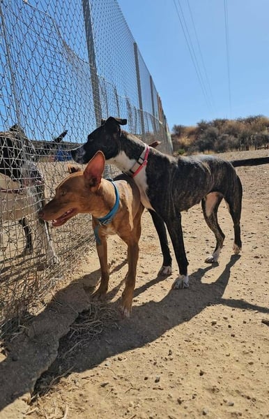 Dobby (*ca. 2022) ist ein junger, fröhlicher Rüde mit einer Schulterhöhe von etwa 47 cm, der mit seinem überschäumenden Temperament und seiner liebenswerten Art jeden begeistert. Er wurde zusammen mit seiner Hundekumpelin Paquita gefunden, doch das Glück hielt nicht lange an: Nachdem die beiden für einen Monat ein vorübergehendes Zuhause fanden, konnten ihre Besitzer sie nicht länger behalten, und so landeten sie in unserem Tierheim.