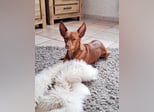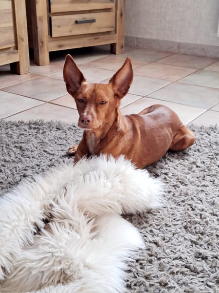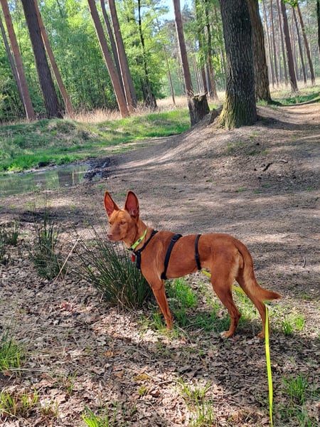 Sie ist super gern draußen und ist da eine erfolgreiche Mäusejägerin. Diese frisst sie aber nicht, sondern freut sich einfach über ihren Erfolg. Mit anderen Hunden ist sie super und möchte gern spielen. Sie rennt draußen gern umher und tobt sich richtig aus.