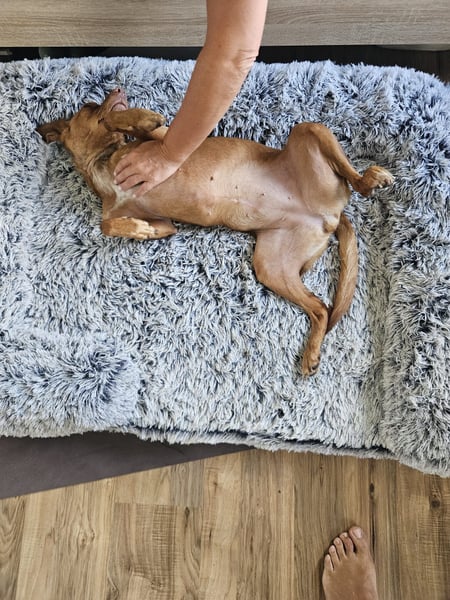 Wichtig ist für Flora, dass sie eine Decke hat, wenn man mit ihr in ein Kaffee oder generell Ausflüge macht geht. Dann legt sie sich ab und ist super entspannt.