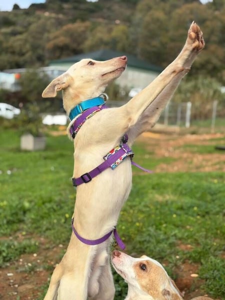 An der Leine ist Maus noch etwas unsicher, vor allem wenn er alleine unterwegs ist. Vermutlich kennt er das Laufen an der Leine bisher kaum. Mit den täglichen Spaziergängen mit den freiwilligen Helfern macht er jedoch stetige Fortschritte. Anfangs ist er noch zögerlich, doch sobald der Hundepark erreicht ist, verwandelt sich Maus in eine echte „Turbomaus“ und flitzt mit großer Freude von einer Ecke zur anderen. Abseits davon zeigt er sich neugierig, schnuppert begeistert alles ab und lässt sich von anderen Hunden überhaupt nicht aus der Ruhe bringen. Neben Rosaria hat er bereits weitere Hunde kennengelernt und zeigt sich dabei sehr sozial.