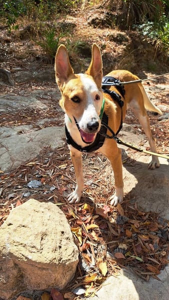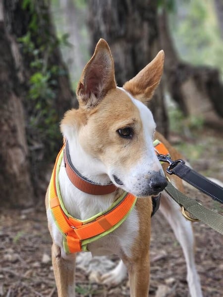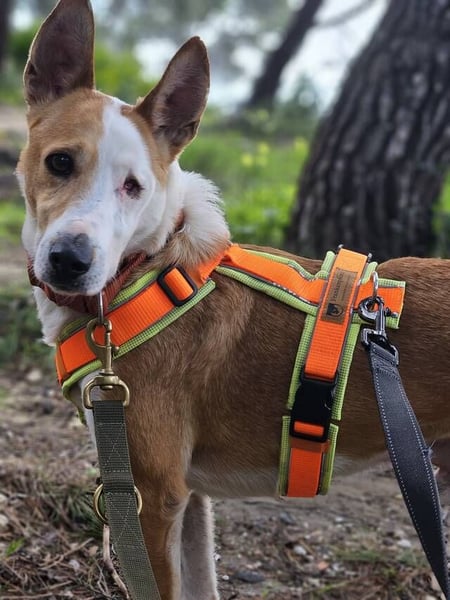 Lopez läuft sehr schön an der Leine – sowohl im Tierheimalltag als auch bei Ausflügen außerhalb, zum Beispiel bei Spaziergängen im Wald. Leider merken wir, dass ihn der Tierheimalltag zunehmend traurig macht und seine Freude an kurzen Runden rund ums Gelände nachlässt. Sobald er jedoch draußen in der Natur unterwegs ist, blüht er richtig auf: Er planscht begeistert im Wasser, spielt mit Tannenzapfen und begrüßt freundlich vorbeikommende Wanderer. Auch Autofahren ist für ihn kein Problem – er springt selbstständig ins Auto und verhält sich während der Fahrt ruhig.