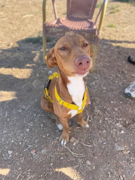Tinkiwinki (*02/2024, ca. 45cm) ist ein junger Podenco Manetomix-Rüde mit dem Körperbau einer charmanten „Wurst auf Beinen“ – lang, niedrig, witzig anzusehen und dabei voller Lebensfreude. Gemeinsam mit Tipsi, Thorpy und Eclaire (bereits adoptiert) kam er in unser spanisches Partnertierheim TripleA Marbella, nachdem er von einem lokalen Jäger ausgesetzt wurde. Trotz seines schwierigen Starts ins Leben hat sich Tinkiwinki seine wunderbare soziale Art und seine große Menschenbezogenheit bewahrt – er möchte einfach immer dabei sein.