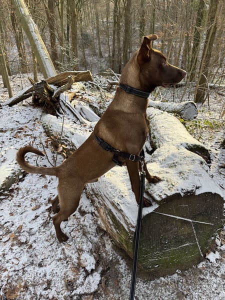 Wir waren insgesamt 9 Geschwister und wurden im Mai 2025 geboren. Aktuell wiege ich ca. 18 kg bei einer Schulterhöhe von etwa 46 cm und da wird auch noch ein bisschen was dazukommen.
