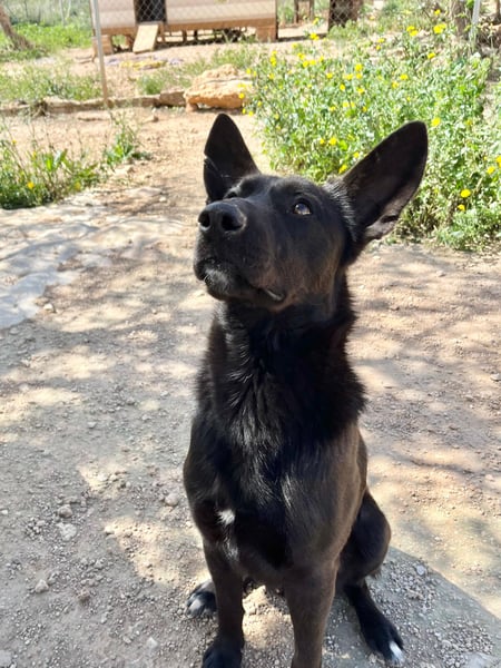 Toni ist aktuell etwa 50 cm groß und wird vom Tierarzt auf etwas über ein Jahr geschätzt. Wir vermuten einen Podengo-Schäferhund-Mischling in ihm – entsprechend bringt er sicherlich viel Energie, Intelligenz und Lernfreude mit.