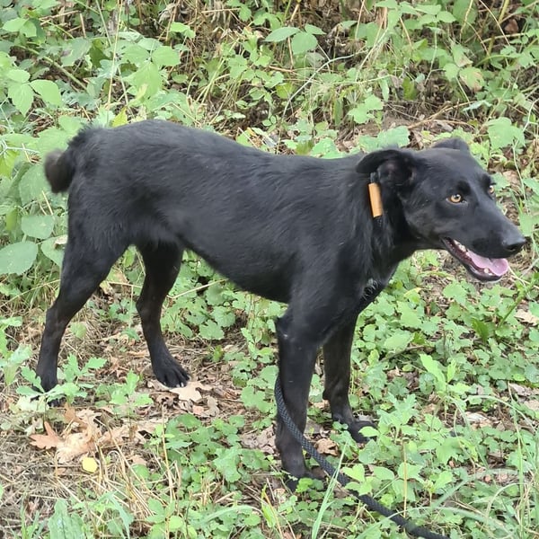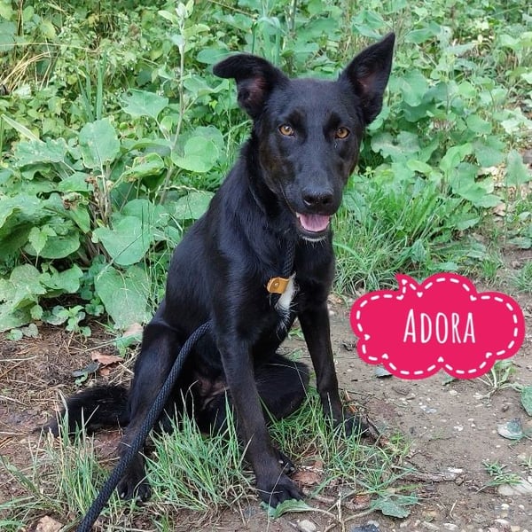 Adora ist eine Hündin, sie ist laut Tierarztschätzung knapp 2 Jahre alt (geb. 10.04.2023), wiegt 14 kg und ist 51 cm groß. Vermutet wird ein Podenco-Labrador Mischling.
