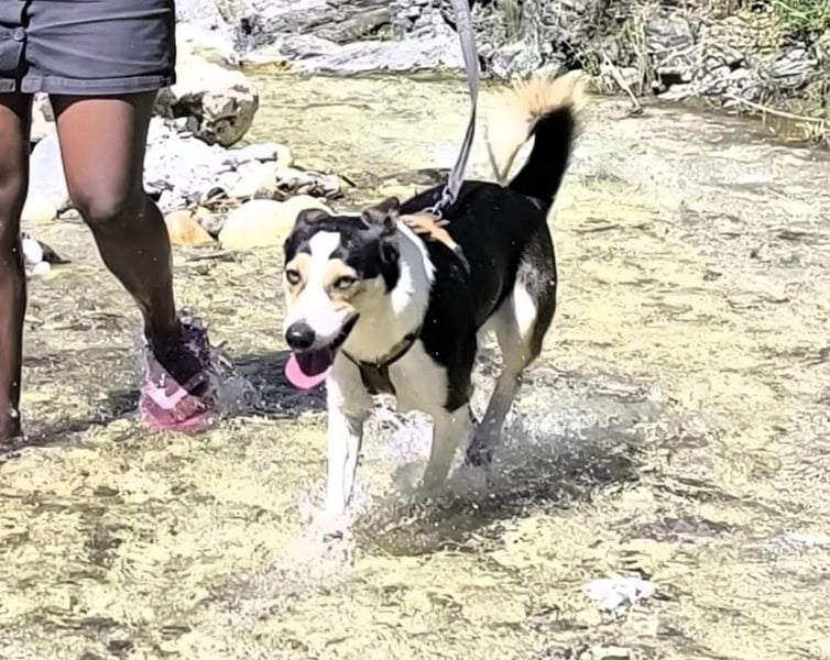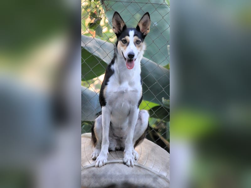 Sonntags kommen die Volontäre, auch viele Kinder, führen mich aus, spielen und schmusen mit mir, denn ich bin eine quirlige und fröhliche, verschmuste, manchmal auch leicht bekloppte kleine Hündin von 48 cm und 13 kg.