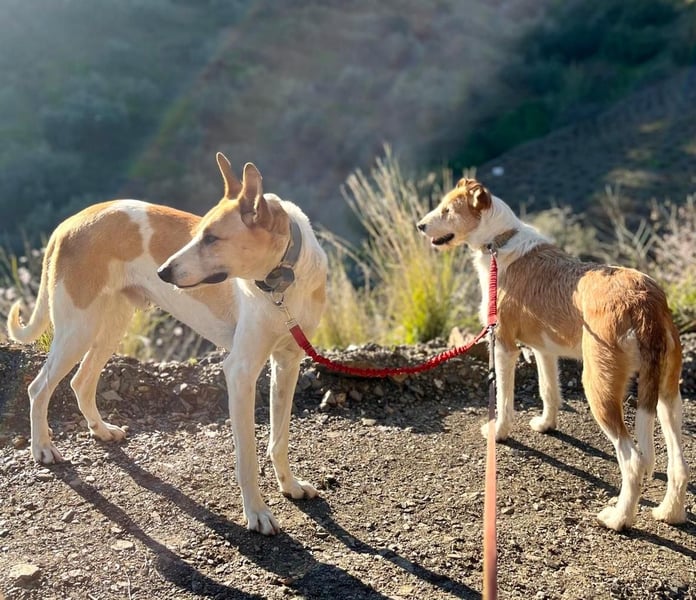 Nun durften sie gemeinsam in eine private Pflegestelle in Spanien ziehen und zeigen dort, wie wundervoll sie sind. Sie kommen bestens mit der vorhandenen Hundegruppe zurecht, akzeptieren Katzen und genießen endlich ein Stück Freiheit. BIENE schaut sich alles von ROLO ab, er gibt ihr Sicherheit und zeigt ihr die Welt – und sie folgt ihm voller Vertrauen.