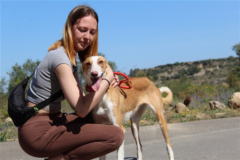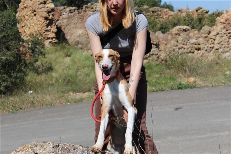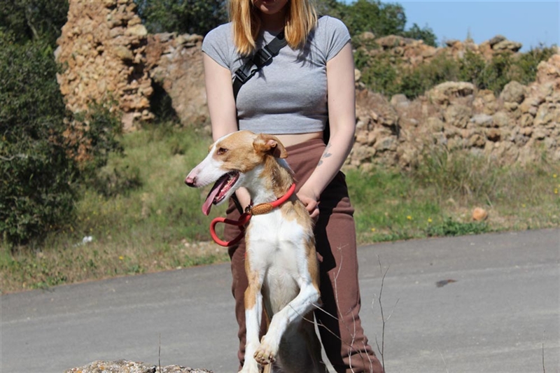 Vega wurde in unsere Auffangstation in Canals gebracht und fühlte sich vom ersten Moment an dort wohl. So wie wir unseren Sonnenschein Vega mittlerweile einschätzen können, ist sie eh der Typ Hund, der immer und überall das Beste aus allem macht. Frohsinn, Aufgeschlossenheit, Freundlichkeit – das sind nur einige der positiven Eigenschaften, die Vega in sich führt. Voller Tatendrang geht sie auf neue Situationen zu. Vega Maus ist eine mutige, junge Podenca, die nur so darauf brennt, die Welt erkunden und erobern zu dürfen.