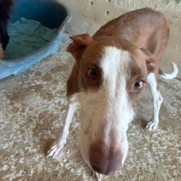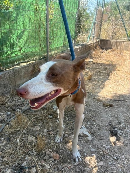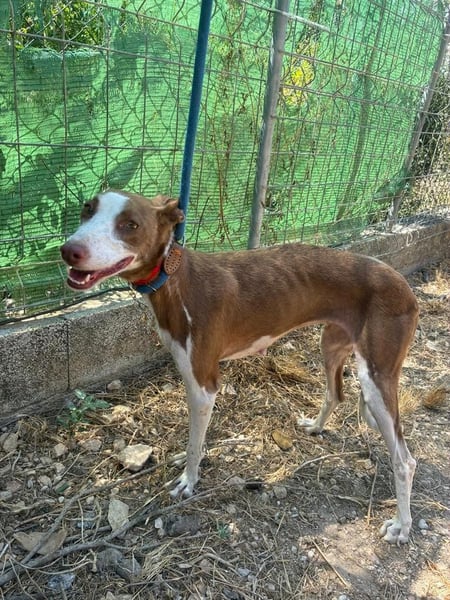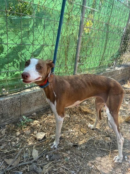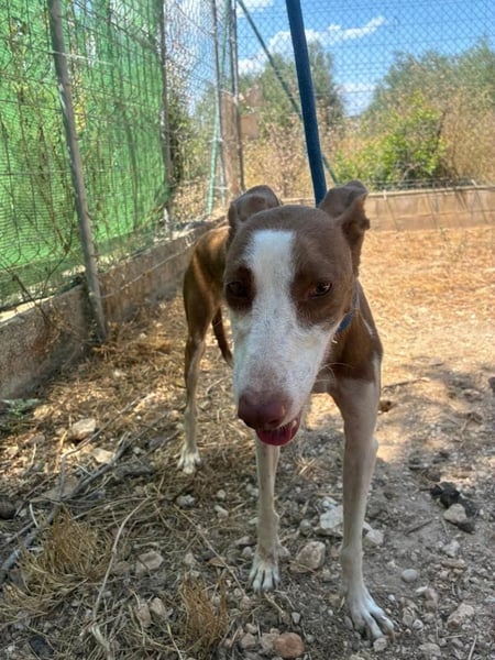 Lola ist eine Hündin, die man nicht vergessen kann – nicht, weil sie laut oder aufdringlich wäre, sondern wegen ihrer warmen Ausstrahlung und der freundlichen Offenheit, die sie jedem entgegenbringt. Mit ihrem schokoladenfarbenen Fell und dem sanften Blick zieht sie sofort in ihren Bann. Sie ist keine stürmische Draufgängerin, aber doch zutraulicher und schneller zugänglich als manch andere Podenca. Wer ihr freundlich begegnet, wird meist schon nach kurzer Zeit mit einem wedelnden Schwanz und strahlenden Augen begrüßt.