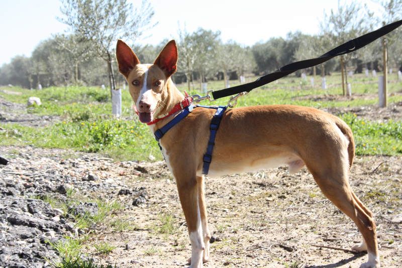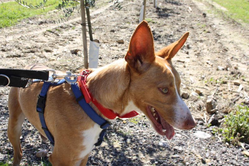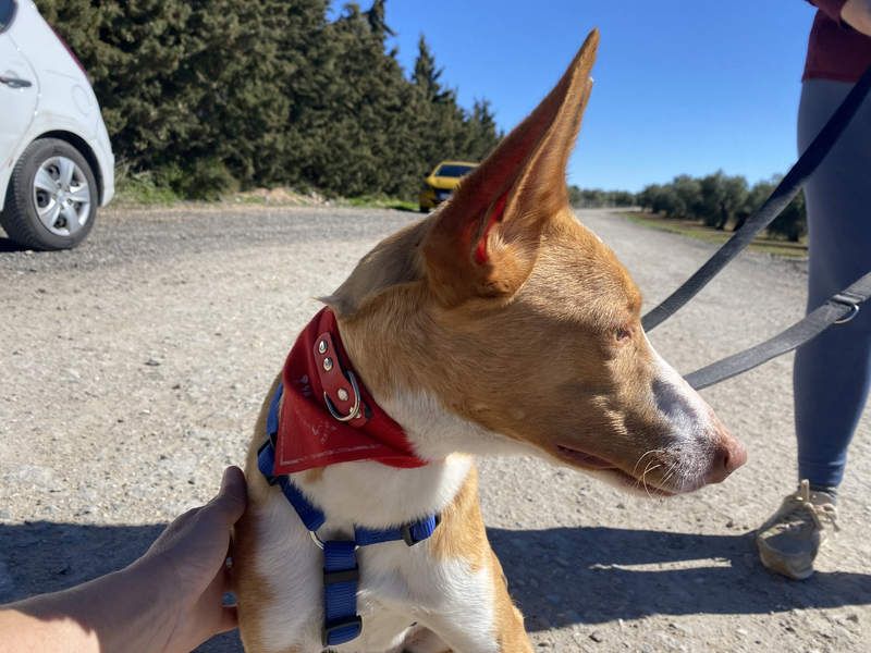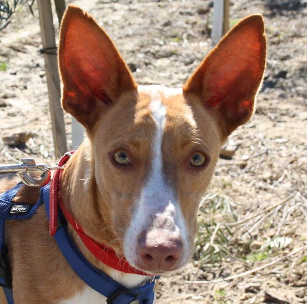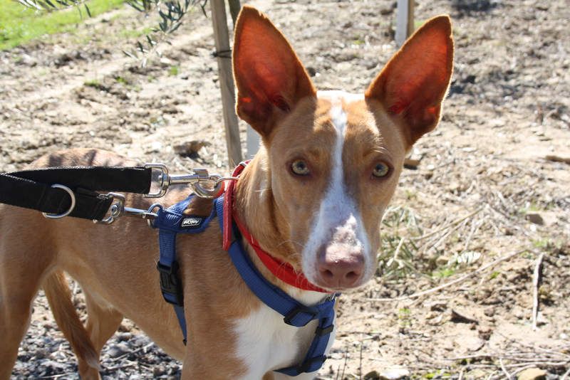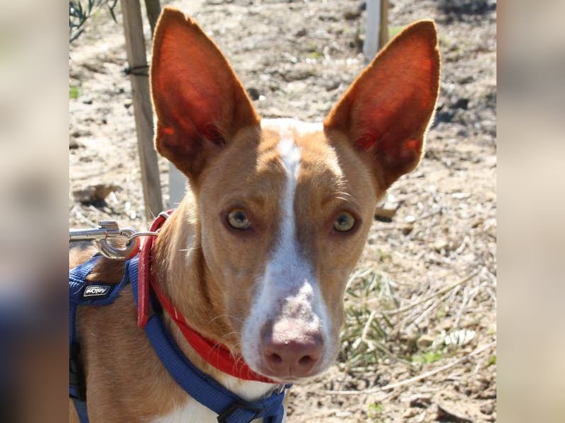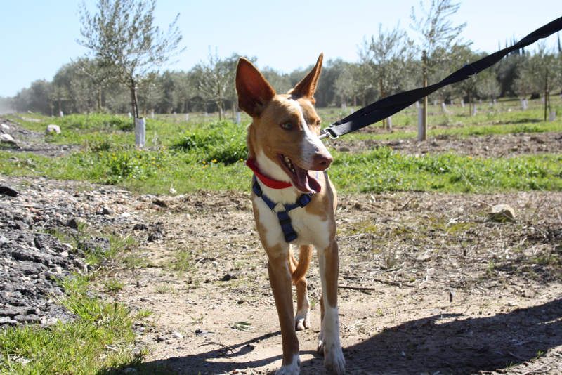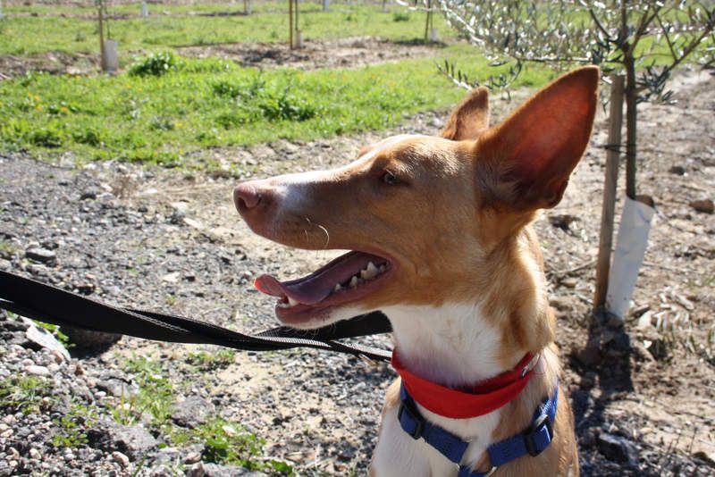 Der auffallend hübsche Milki mit seinen weißen Abzeichen (feine weiße Linie) im Gesicht, dem rötlich-hellbraunen Fell, den riesigen Ohren und den liebevollen Augen ist einfach ein wundervoller Podencorüde. Nicht nur diejenigen, die diese besondere Hunderasse bereits kennen, wissen Milkis Wesen besonders zu schätzen: sehr sanftmütig, ruhig, recht gelassen für einen Jagdhund, aufmerksam, neugierig, intelligent und dem Menschen sehr zugewandt.