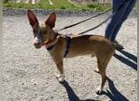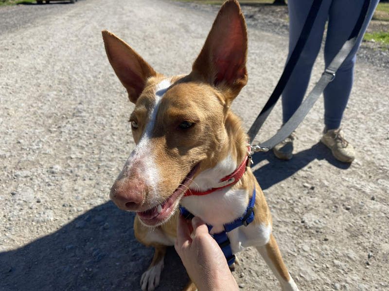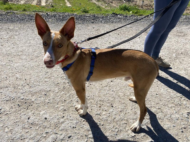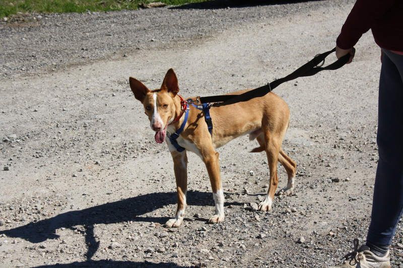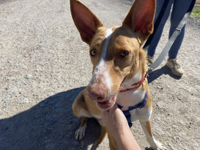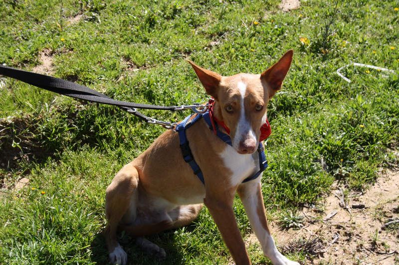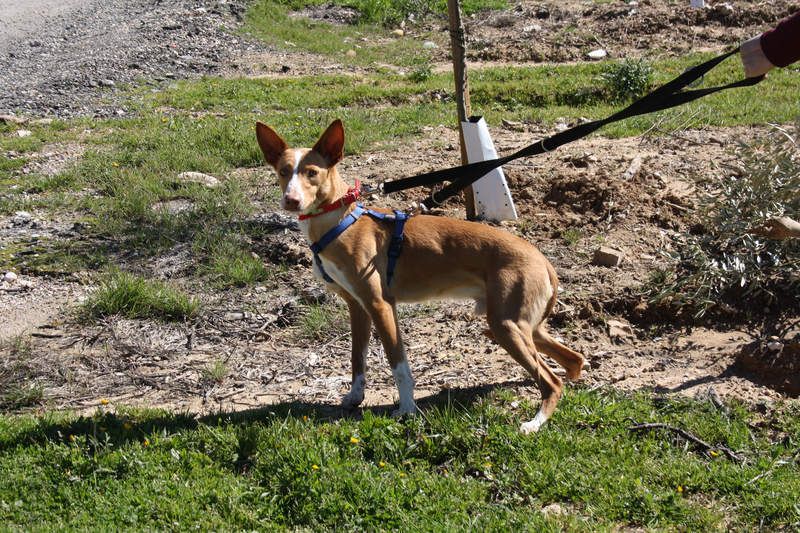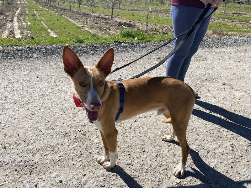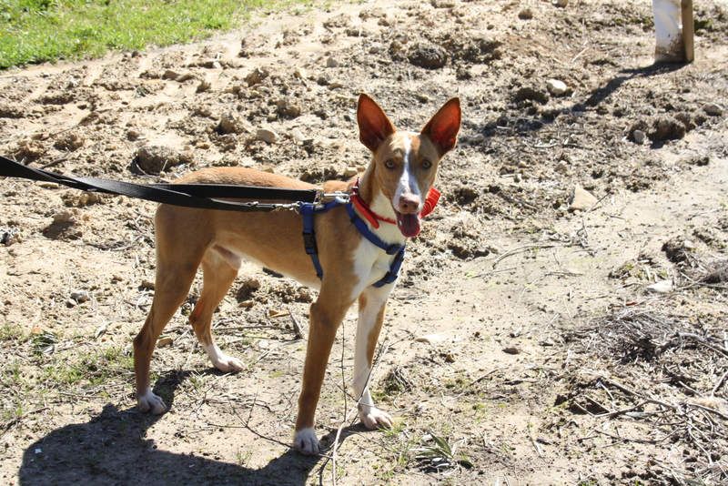 Der auffallend hübsche Milki mit seinen weißen Abzeichen (feine weiße Linie) im Gesicht, dem rötlich-hellbraunen Fell, den riesigen Ohren und den liebevollen Augen ist einfach ein wundervoller Podencorüde. Nicht nur diejenigen, die diese besondere Hunderasse bereits kennen, wissen Milkis Wesen besonders zu schätzen: sehr sanftmütig, ruhig, recht gelassen für einen Jagdhund, aufmerksam, neugierig, intelligent und dem Menschen sehr zugewandt.
