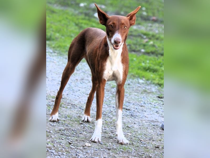 Ich bin Socks, eine hübsche, junge, ca. im Januar 2024 geborene Podenca und Mama zweier bildhübscher Kinder.