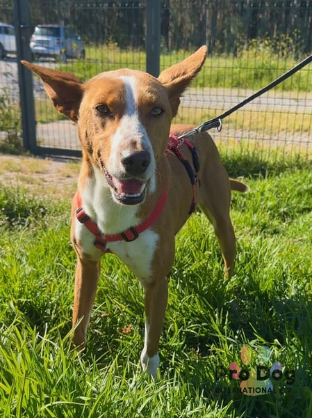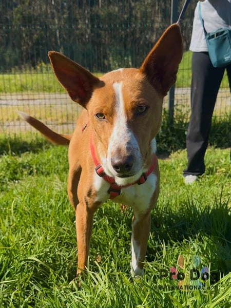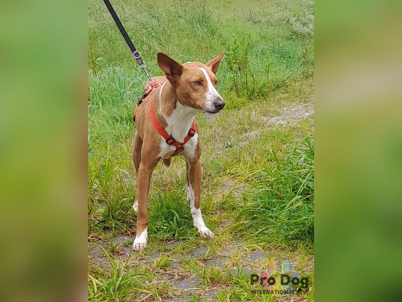 Zulu, ein wunderschöner Podenco mit rehbraunen Augen und einem tollen Charakter, der auf der Suche nach seinem neuen Zuhause ist. Er ist ein liebevoller junger Hund, der gerne kuschelt und die Nähe sucht. Bei Spaziergängen läuft er gut an der Leine. Mit anderen Hunden zeigt er sich sozial und verspielt.