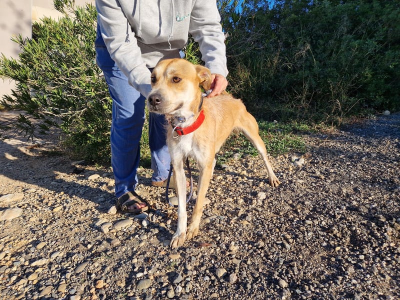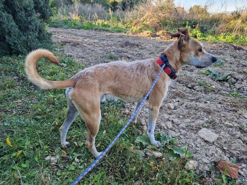 Ohne Chip, dafür aber übersät mit Parasiten, kam er ins Tierheim Tortosa, wo er sofort gebadet und medizinisch behandelt wurde.