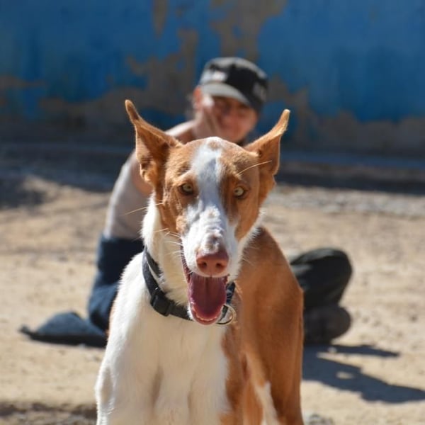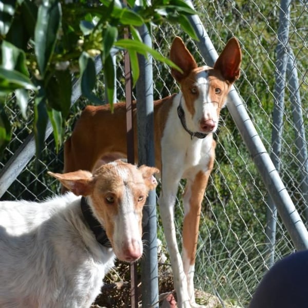 India und Pistolo sind zwei sehr junge Podenco-Hunde, die von ihrem Besitzer, einem Jäger, abgegeben wurden … Eine typische Geschichte.