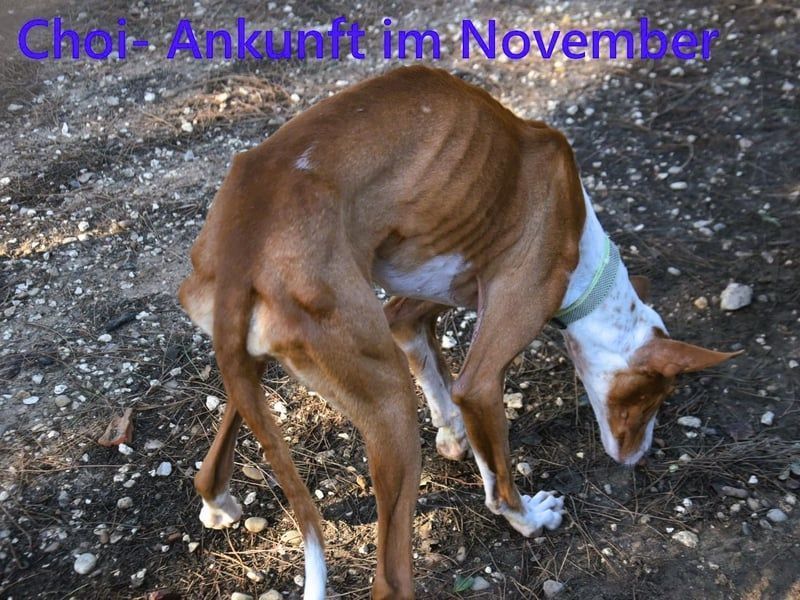 Choi wurde in der Nähe von Kimba gefunden. Wahrscheinlich wurde er von einem Jäger ausgesetzt. Das war sein Glück, so ist er im Tierheim Kimba gelandet, wo er in Sicherheit ist. Er war sehr dünn und sehr hungrig. Seine letzte anständige Mahlzeit war wohl schon sehr lange her. Aber bereits nach einer Woche hat er sich erholt. Er ist fit, spielt gerne mit den anderen Hunden, kann aber auch relaxed in der Sonne liegen und nix tun. Einfach typisch Podenco sein. Jetzt muss er nur noch seine Familie finden, die ihn liebevoll auf seinem weiteren Weg begleiten möchte.