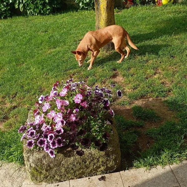 Aurea ist unabhängig und macht überhaupt keine Probleme. Sie versteht sich gut mit anderen Hunden.