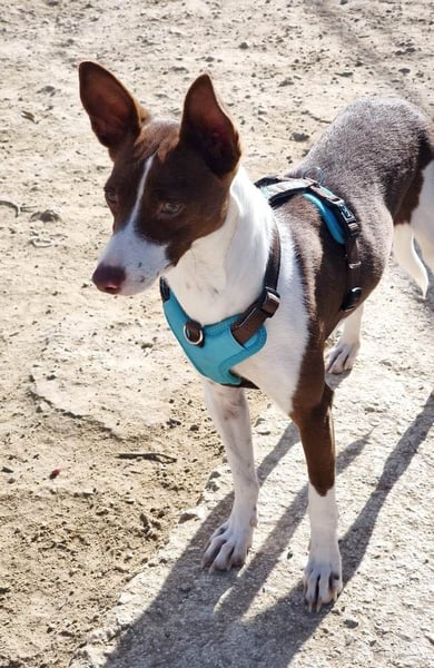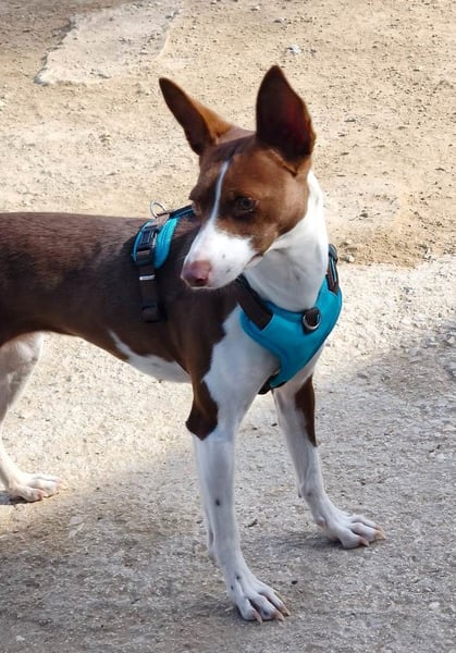 Sie ist eine sehr liebe Hündin, etwas schüchtern, aber verträglich und ruhig. Trotz ihrer Schüchternheit ist sie sehr anhänglich und läuft gut an der Leine.