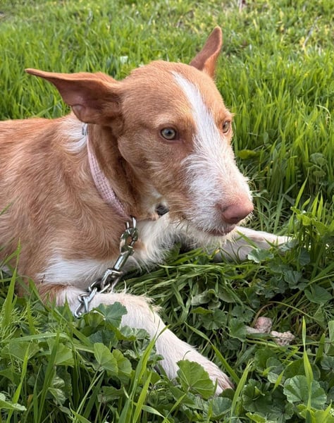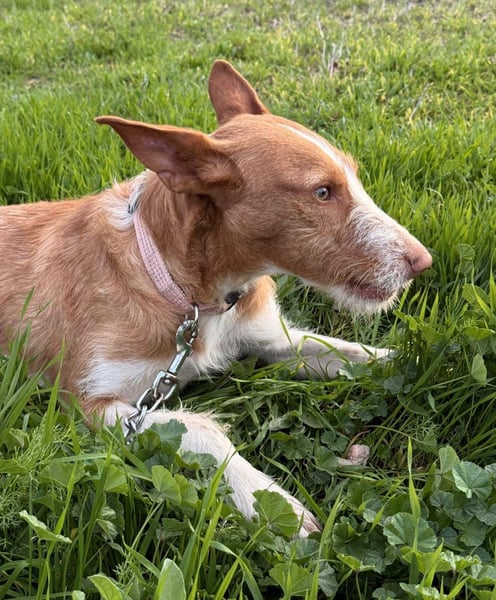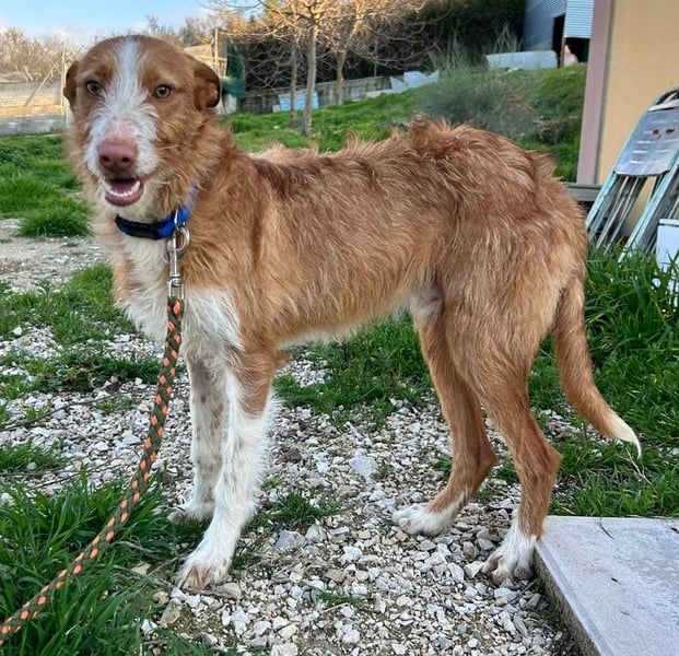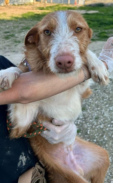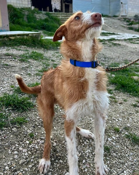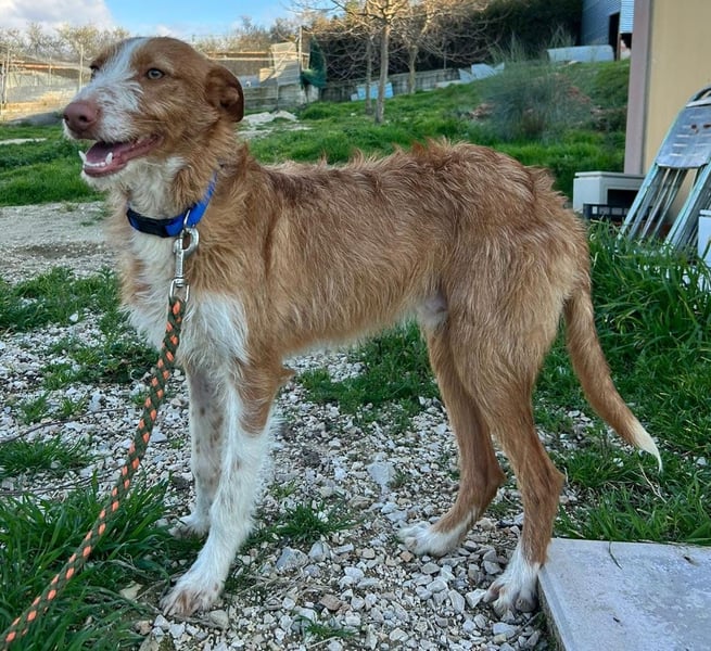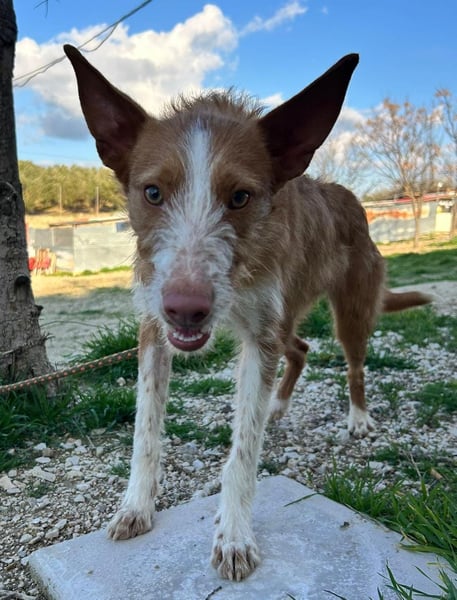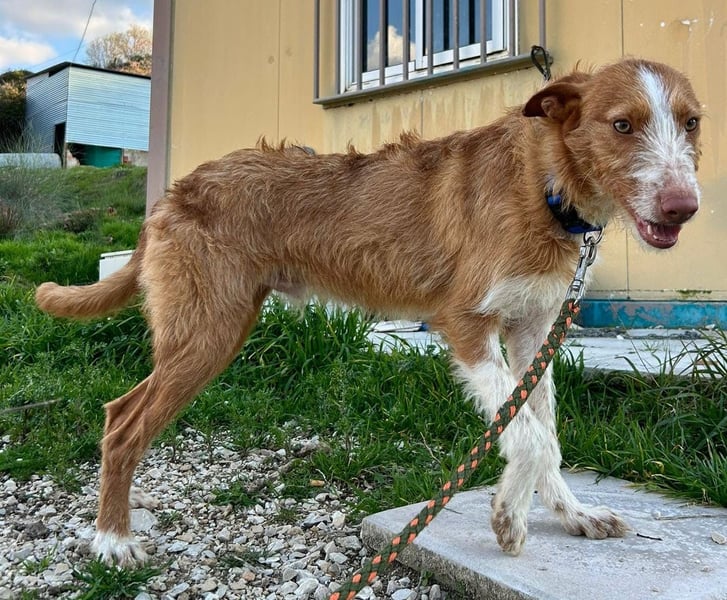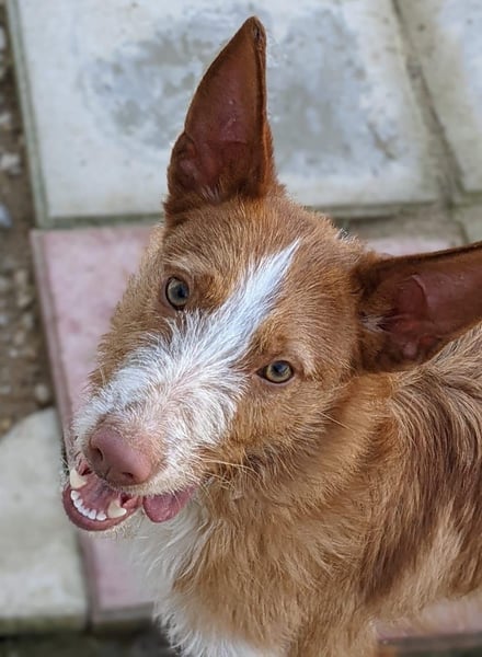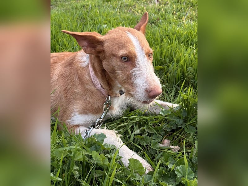 Unser wunderschöner Ulises ist ein junger rauhaariger Podenco-Rüde, der mit seinem besonderen Charme sofort alle Herzen erobert. Mit seinem braun-weißen Fell, dem leicht zotteligen Look und seinem edlen Ausdruck ist er einfach ein ganz besonderer Hund.