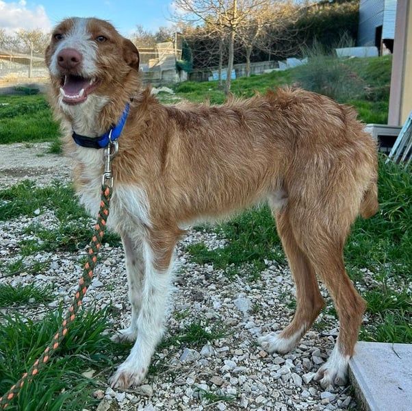 Unser wunderschöner Ulises ist ein junger rauhaariger Podenco-Rüde, der mit seinem besonderen Charme sofort alle Herzen erobert. Mit seinem braun-weißen Fell, dem leicht zotteligen Look und seinem edlen Ausdruck ist er einfach ein ganz besonderer Hund.