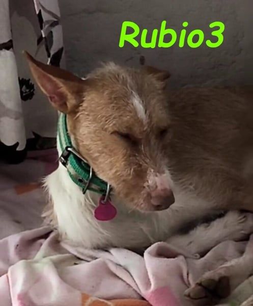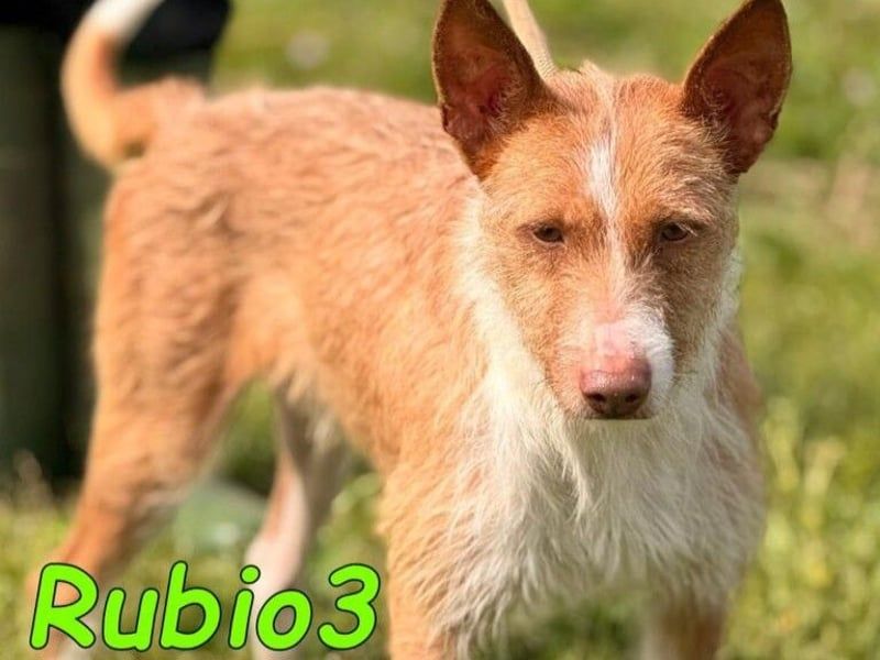 Rubio3 ist ein freundlicher, sozialer Rüde, der sich sowohl mit Menschen als auch mit anderen Hunden sehr gut versteht. Rubio3 wurde auf einem Feld schwer verletzt gefunden. Sein Oberschenkel war aus dem Hüftgelenk ausgekugelt, der Hüftkopf bereits nekrotisch vermutlich die Folge eines Tritts oder eines Autounfalls. Rubio3 wurde ganz schnell operiert und erholt sich gerade von der OP. Die beste Medizin für Rubio3 ist nun die Chance auf eine eigene Familie, bei der er ankommen und glücklich werden darf.