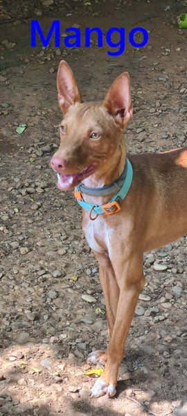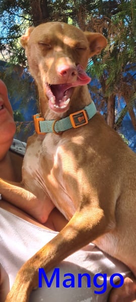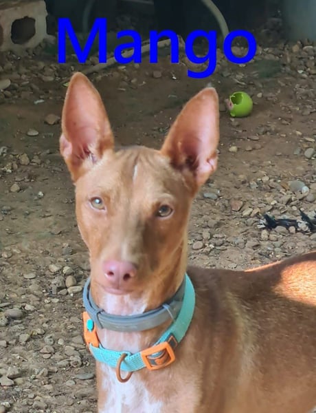Mango befindet sich auf einer Pflegestelle in 67722 Winnweiler, wo der Traum-Podenco gern besucht werden kann.
