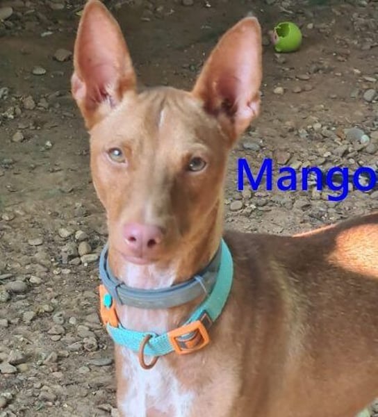 Als er zum ersten Mal ins Tierheim kam war er ein wenig schüchtern, aber sofort wurde Toblerone (Mastin-Mix) sein Freund. Es war sofortige Freundschaft, und sie wurden gute Kumpel. Mango ist jung, daher liebt er es, viel zu spielen, genauso wie Toblerone es liebt zu spielen. Er ist sehr neugierig und spielt gerne mit allen Hunden. Er ist verspielt und hat viel Geduld beim groben Spiel und mit allen anderen Hunden. Er ist sehr freundlich, sozial mit allen Hunden und Menschen.