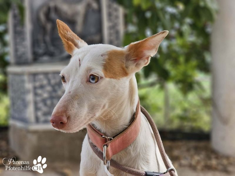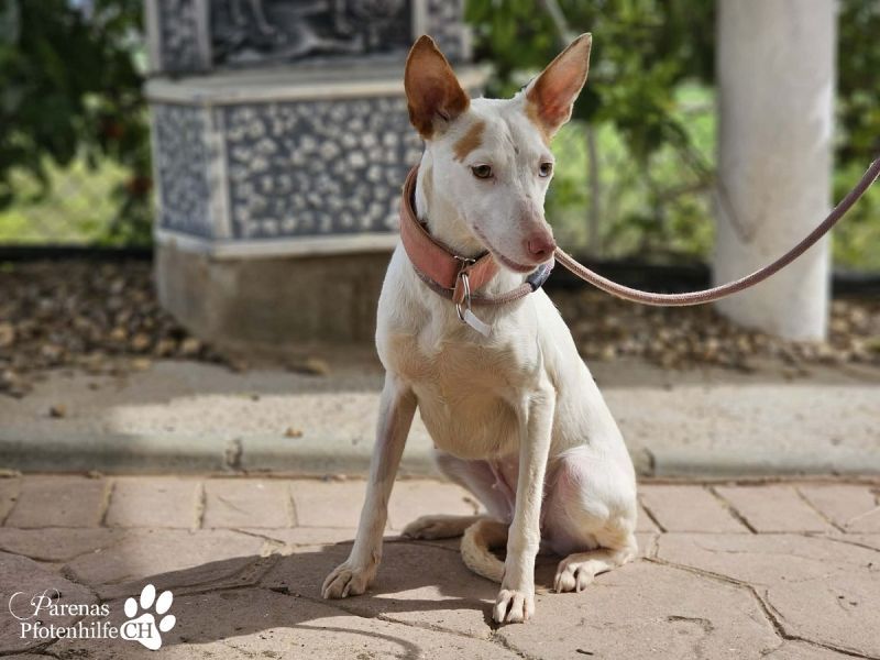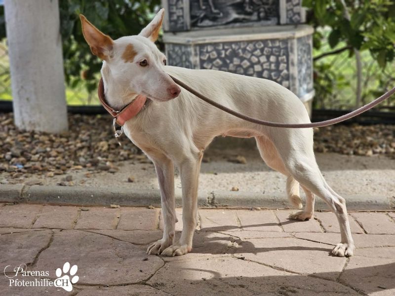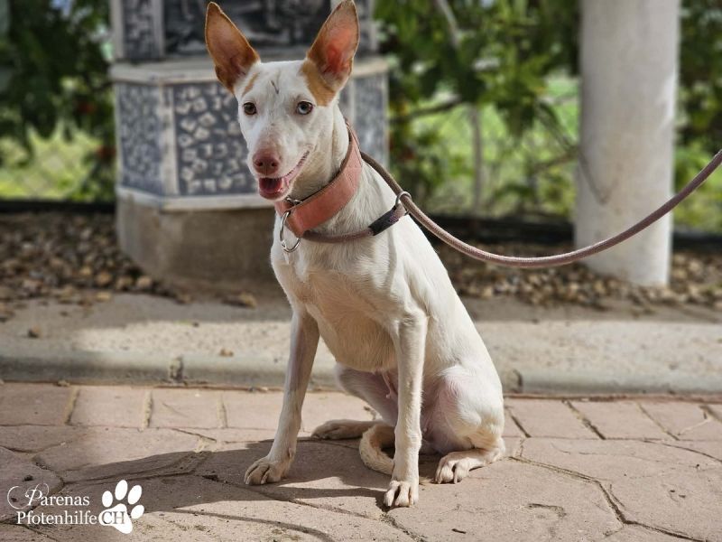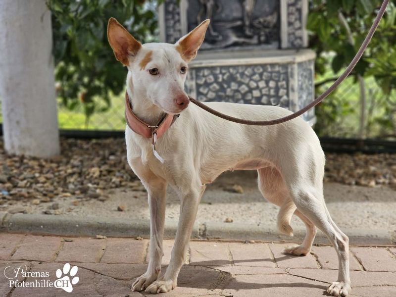 Mit ihrer fröhlichen und ausgeglichenen Art erobert Nivea sofort die Herzen. Die bezaubernde Podenca begegnet ihrer Umwelt mit neugierigen Augen und einem offenen Wesen. Nivea liebt die Nähe zu ihren Menschen, genießt jede Streicheleinheit und zeigt sich unglaublich verschmust und anhänglich – sie möchte einfach gefallen. Mit anderen Hunden ist sie sozial und absolut gruppentauglich. Sie spielt gerne, bleibt dabei jedoch stets freundlich und respektvoll. Liebevoll, zutraulich und voller Wärme – eine echte Traumhündin, die nur darauf wartet, endlich anzukommen und ihre Menschen glücklich zu machen.