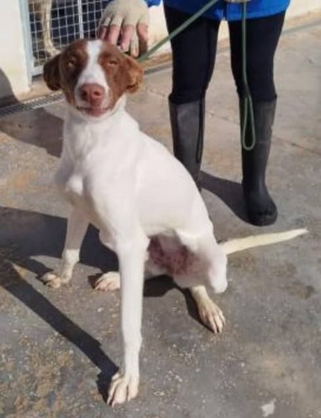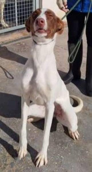 Diese wunderschöne Hündin heißt Nesquick und ist eine bezaubernde, überaus freundliche und gesellige Podenco-Hündin. Sie spielt gerne mit ihren Artgenossen und ist sehr anhänglich.