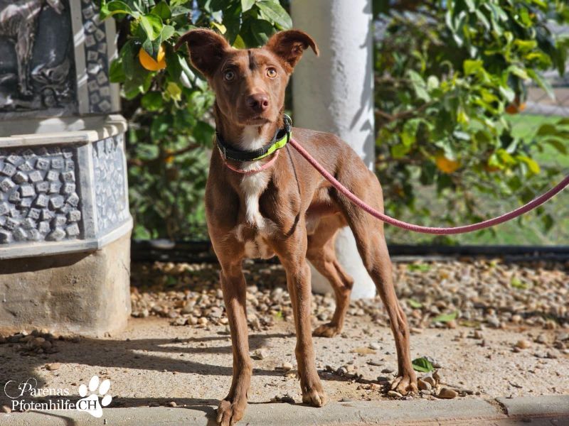 Kael hat in seinem bisherigen Leben leider schlechte Erfahrungen machen müssen. Das hat ihn vorsichtig werden lassen, vor allem Männern gegenüber. Er braucht Zeit, Geduld und ruhige, langsame Handbewegungen, um Vertrauen fassen zu können. Bei Frauen zeigt der schokofarbene Podenco eine ganz andere Seite: Wird er von ihnen mit liebevoller, ruhiger Stimme angesprochen, zeigt er sich sehr verschmust und genießt Streicheleinheiten. Kael ist ein fröhlicher junger Bub, der seine Umwelt neugierig beobachtet. Wir suchen für ihn einfühlsame Menschen, die ihm mit Geduld und Verständnis die Zeit geben, die er braucht, um anzukommen.