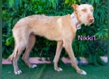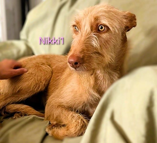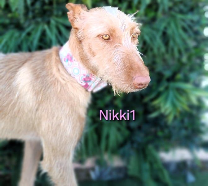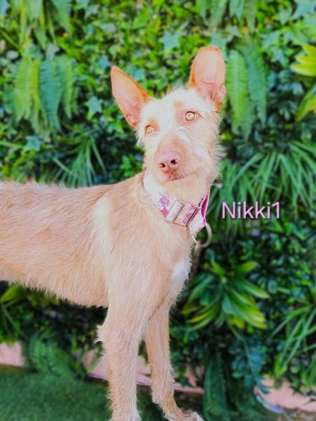 Nikki1 ist eine sehr liebe, noble Podenca, aber anfangs misstrauisch gegenüber Menschen. Sie zeigt sich schüchtern – nicht völlig panisch, aber sie sollte von einer Familie adoptiert werden, die Erfahrung mit ängstlichen Hunden hat und idealerweise bereits einen anderen Hund im Haushalt. Mit anderen Hunden ist sie sehr gut, unterwürfig, nicht dominant und verhält sich ruhig. Sobald sie sich eingewöhnt hat, wird sie ihrer jungen Art entsprechend wahrscheinlich auch etwas verspielter werden. Sie ist sehr lieb und respektiert sowohl aktive Hunde als auch schüchterne.