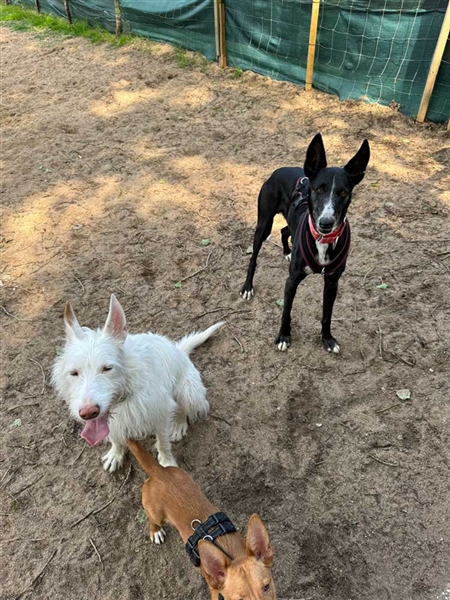 Normalerweise mit Superlativen sehr vorsichtig, muss ich mich hier mal hinreißen lassen und ohne Wenn und Aber verkünden: Jim ist ein echter Traumhund. Er ist durch und durch lieb, sehr charmant, ein liebenswerter Schmuser und kann auch die Hundesprache perfekt. Hier in Deutschland hat Jim sich schnell an sein neues Leben angepasst. Seine genügsame und zufriedene Art hilft ihm, in an ganz unterschiedliche Lebenssituationen glücklich zu werden. Jim ist ein ruhiger und gelassener Hund, der jeder Auseinandersetzung aus dem Weg geht. Er mag die Gesellschaft anderer Hund, kann also gut in einem Rudel oder mit einem Partner oder Partnerin leben, aber er ist nicht auf vierbeinige Gesellschaft angewiesen. Er liebt die körperliche Nähe zu seinen Menschen und hat keine Angst vor ihnen, solange sie nicht mehr ganz klein sind. Kleine Kinder, die noch wilder spielen und ein Haushalt, in dem es sehr trubelig zugeht, ist das Einzige, was Jim nicht gerne mag. Denn in dem eindrucksvollen großen Körper steckt eine podencotypische ganz zarte Seele, die etwas geräuschempflindlich und schreckhaft sein kann.