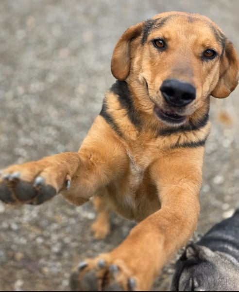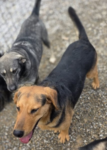 Mit anderen Hunden ist er durchweg verträglich und lebt aktuell in einem gemischten Rudel, in dem er sich tadellos verhält. Kein aggressives Verhalten, keine Dominanz – Time ist einfach ein sehr gutmütiger, höflicher und liebevoller Hund. Sein Aktivitätslevel ist mittel, er würde sich über Spaziergänge und Nähe freuen, ohne überdreht zu sein.