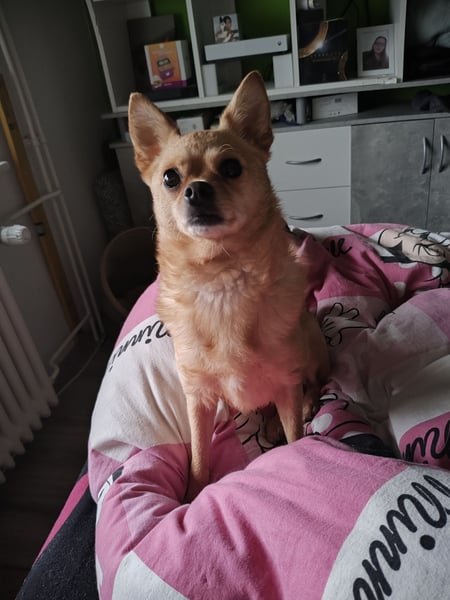 Sie ist ein Pomschi-Rehpinscher und ist 5.5jahre alt, kastriert, gechipt und Grundgeimpft.