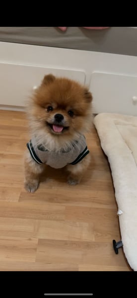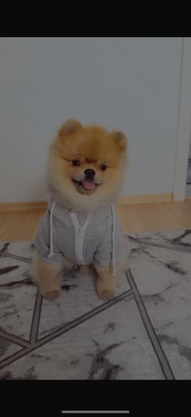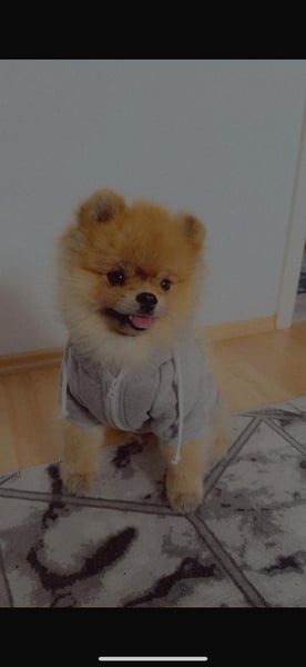 Er hat aktuell weniger Fell am Hinterteil (vermutlich Alopecia X, eine hormonell erblich bedingte Fellveränderung, typisch bei Zwergspitzen). Das Fell wächst gerade wieder langsam nach. Er ist ansonsten gesund, fit und munter.