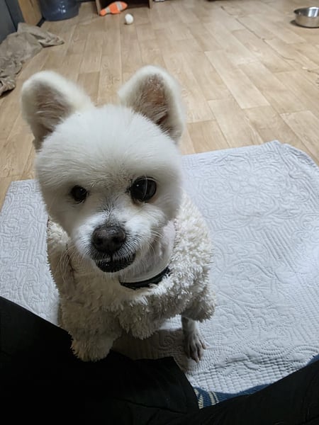 Yun hat eine traurige Vergangenheit hinter sich. Im Winter wurde er ohne Schutz vor Kälte oder Wetter an einer kurzen Metallkette gehalten und stark vernachlässigt. Als er schließlich gerettet wurde, stellten die Tierärzte fest, dass er vermutlich schon als Welpe Misshandlungen erlebt haben muss. Sein rechtes Auge ist deutlich kleiner, was laut tierärztlicher Einschätzung sehr wahrscheinlich die Folge früherer Gewalt ist. Trotz dieser Erfahrungen hat Yun seine freundliche und liebevolle Art bewahrt.