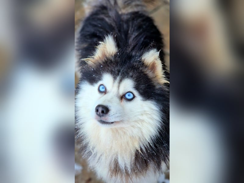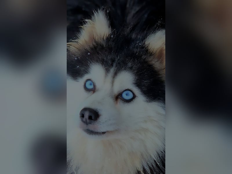 Wir bieten unseren gesunden, wunderschönen Pomsky F3-Rüden mit den einzigartigen aqua-blauen Augen zum Decken an. Er ist durch den Embark-Test auf über 270 Krankheiten geprüft und frei von HD, ED, PL und PRA (Augen).